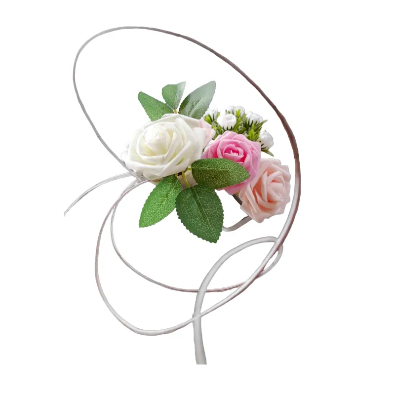 Ces quatre bambous de tailles variées sont décorés de roses en mousse.