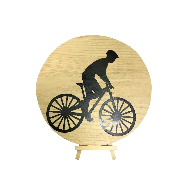 Ce cercle en bois posé sur son trépied est parfait pour faire plaisir à un cycliste. Il est possible de le personnaliser avec le prénom par exemple.