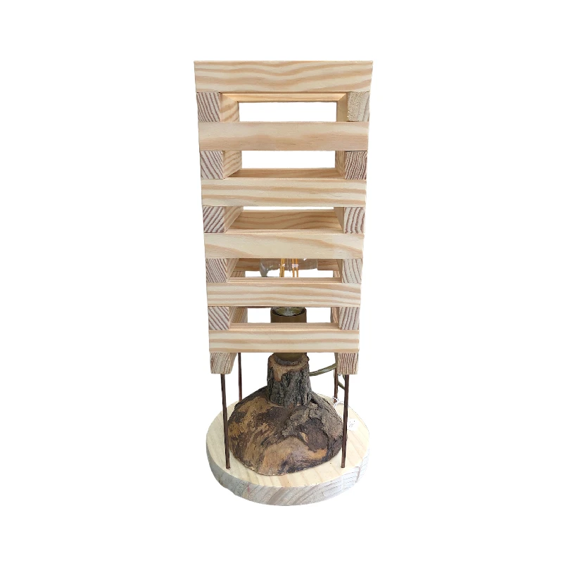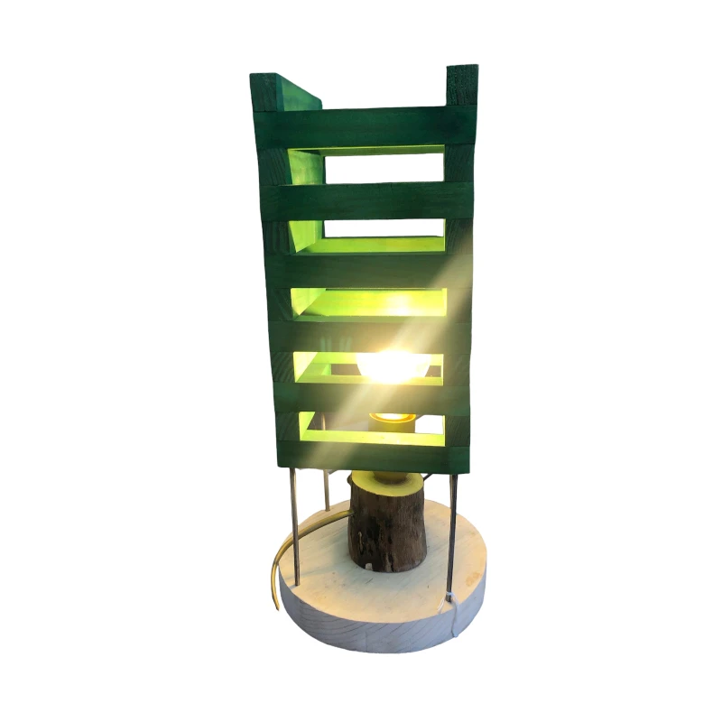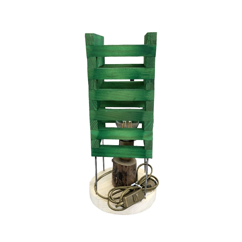 Cette lampe au pied originale est artisanale. Disponible en bois brut ou de couleur verte. (ampoule offerte)
