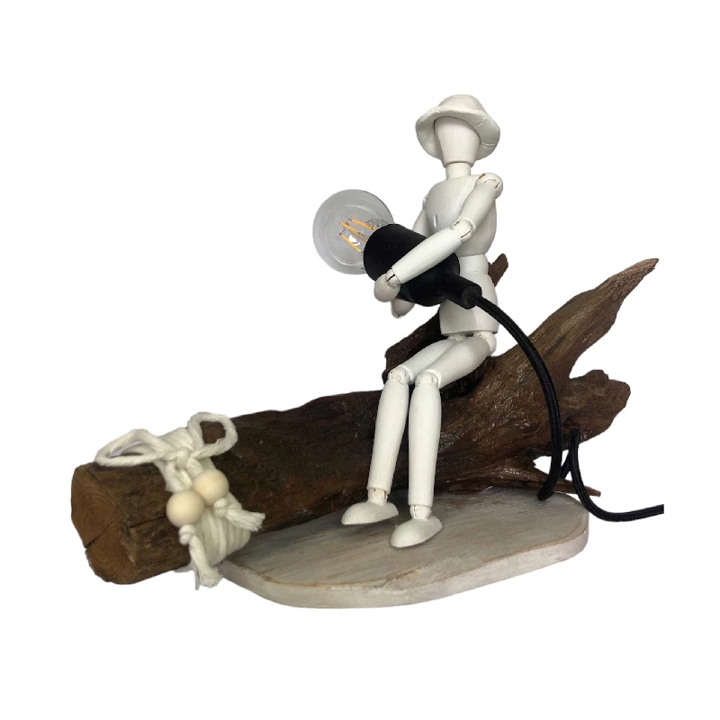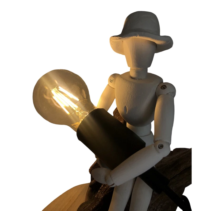 Cette lampe originale est posée sur une branche vernis avec un mannequin tenant l’ampoule. (ampoule offerte)