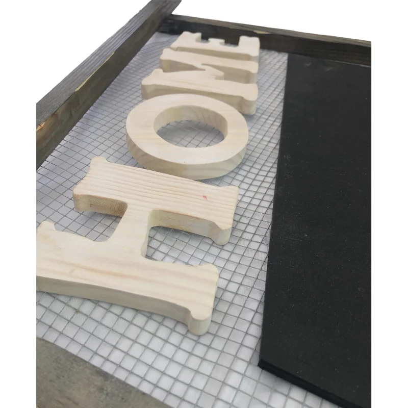 Ce mémo est fabriqué en sapin. Une peinture spéciale craie a été appliquée.