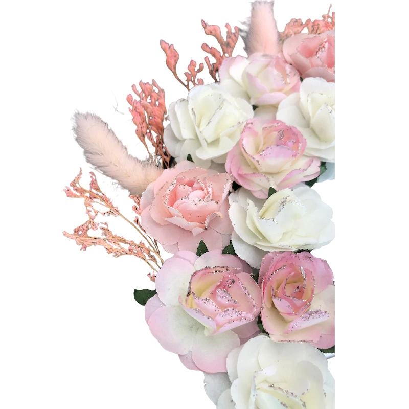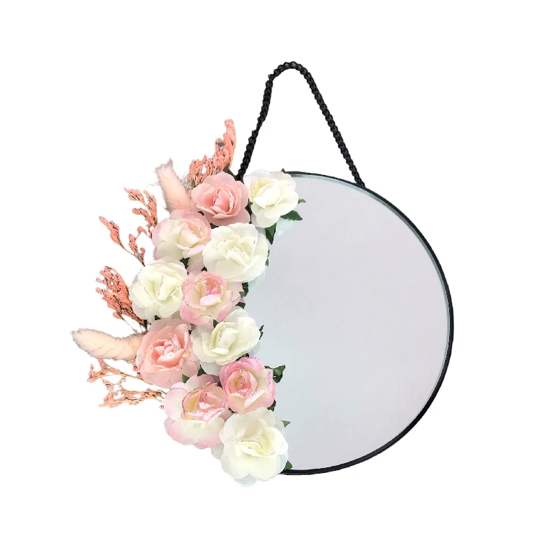 Ce petit miroir est équipée d’une chainette pour le suspendre. Il est orné de fleurs blanches et roses.