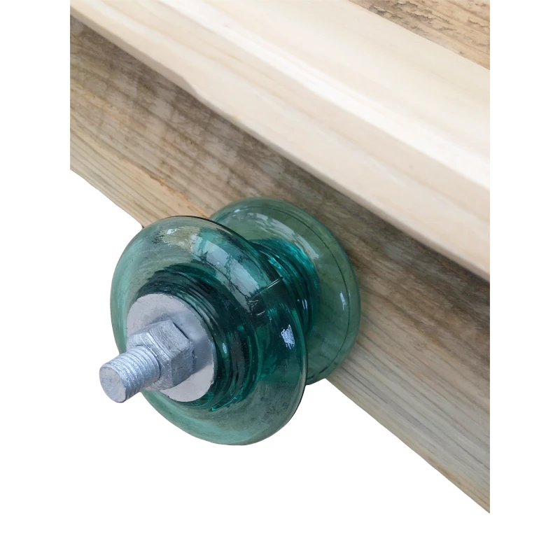 Ce porte-manteaux est faite en sapin échauffé avec ses trois isolateurs. Une étagère est placée sur le dessus.