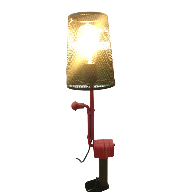Super originale, cette table faite à partir d’un vérin et d’un cric Volkswagen, avec son plateau en frêne (4cm d’épaisseur) dispose d’une lampe en son centre.